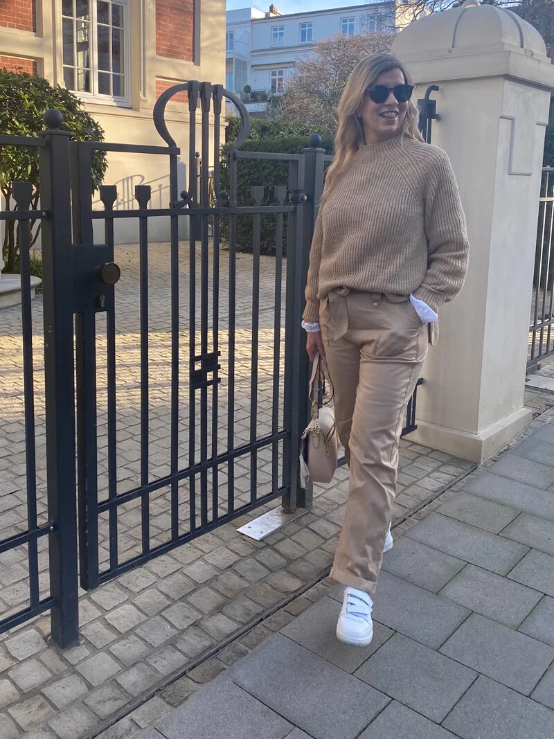 Mein heutiges Outfit ist ein absoluter "No-Brainer". Du musst Dich um fast nichts kümmern. Schwarz, Camel und Weiß passen immer zusammen. Und ich bin sicher, dass Du diese "Farben" definitiv in Deinem Schrank finden wirst. Anstelle von Beige könntest Du auch Khaki wählen. Das ist etwas dunkler, passt aber ebenso gut wie Camel.